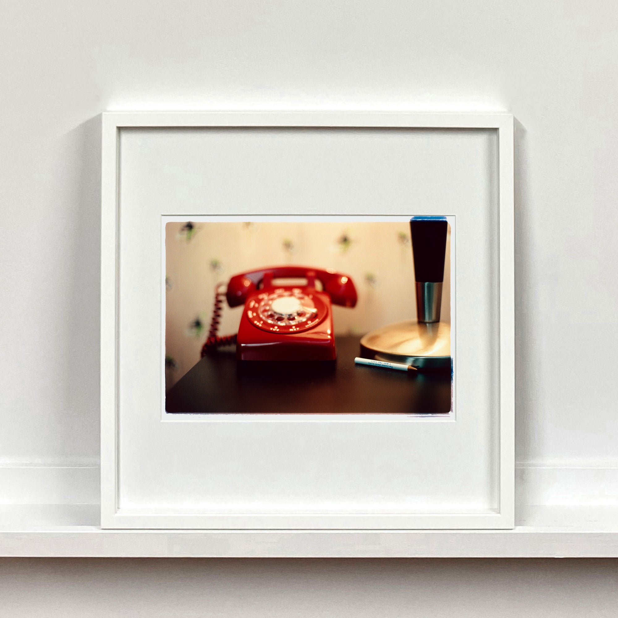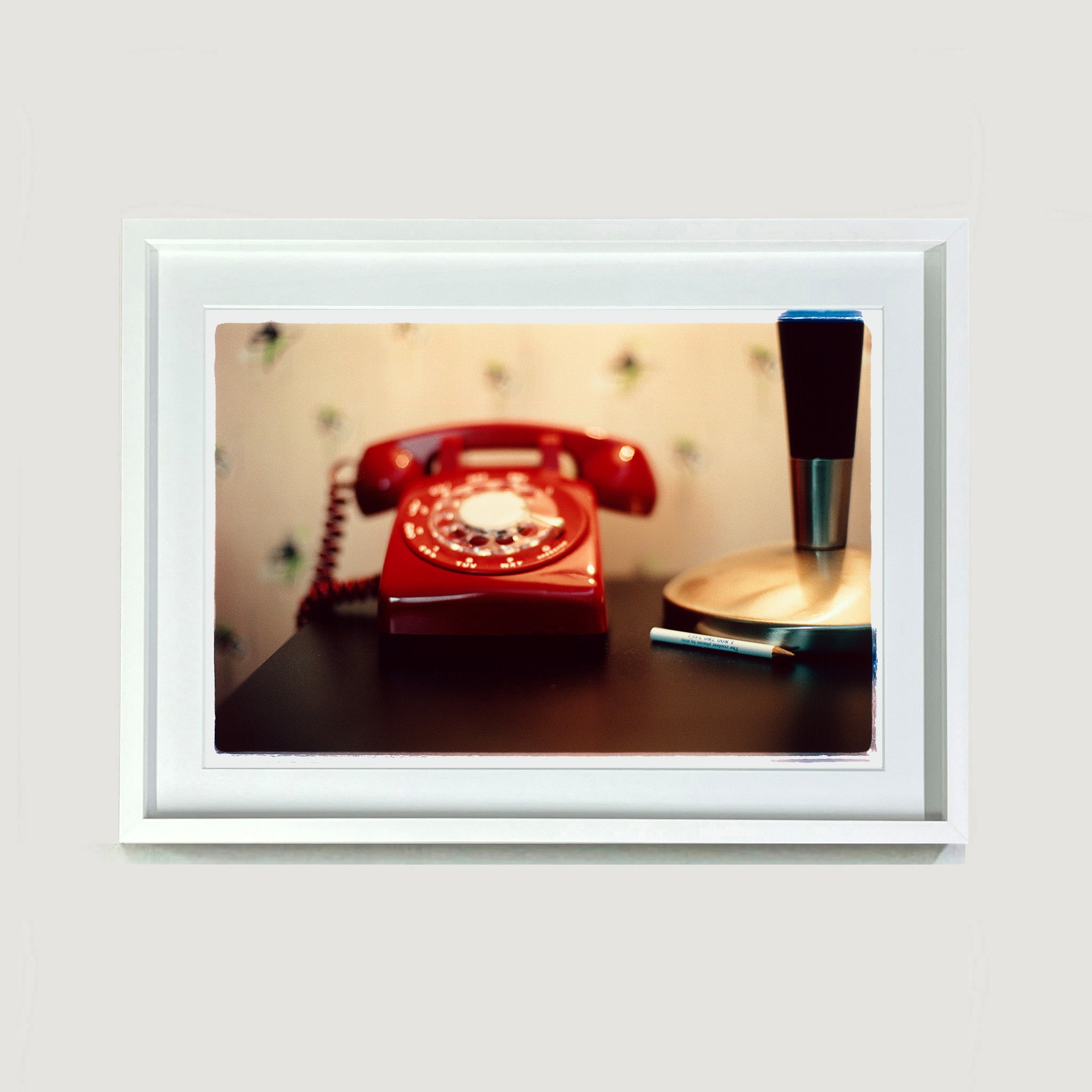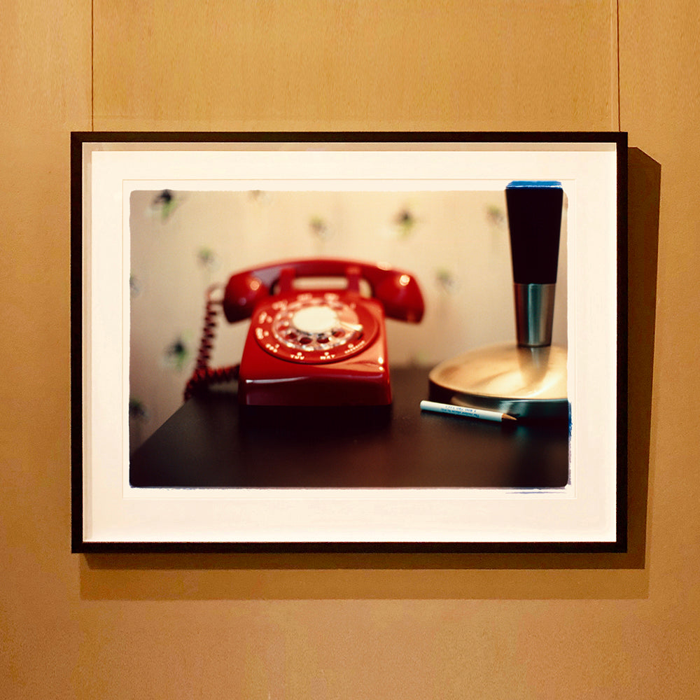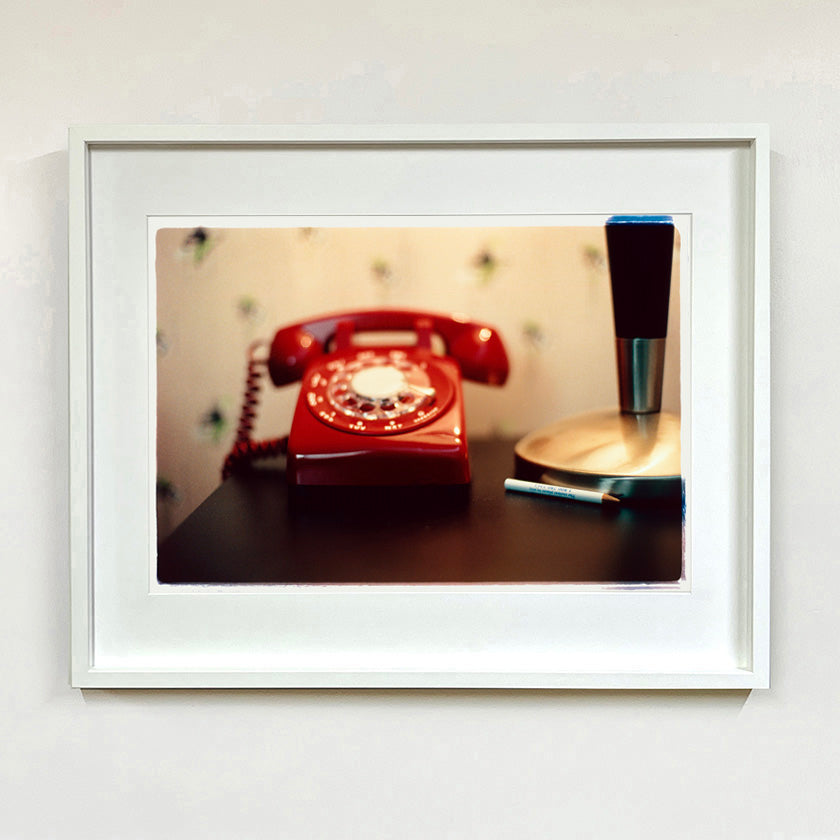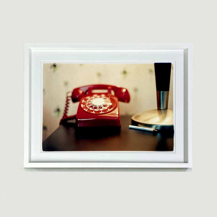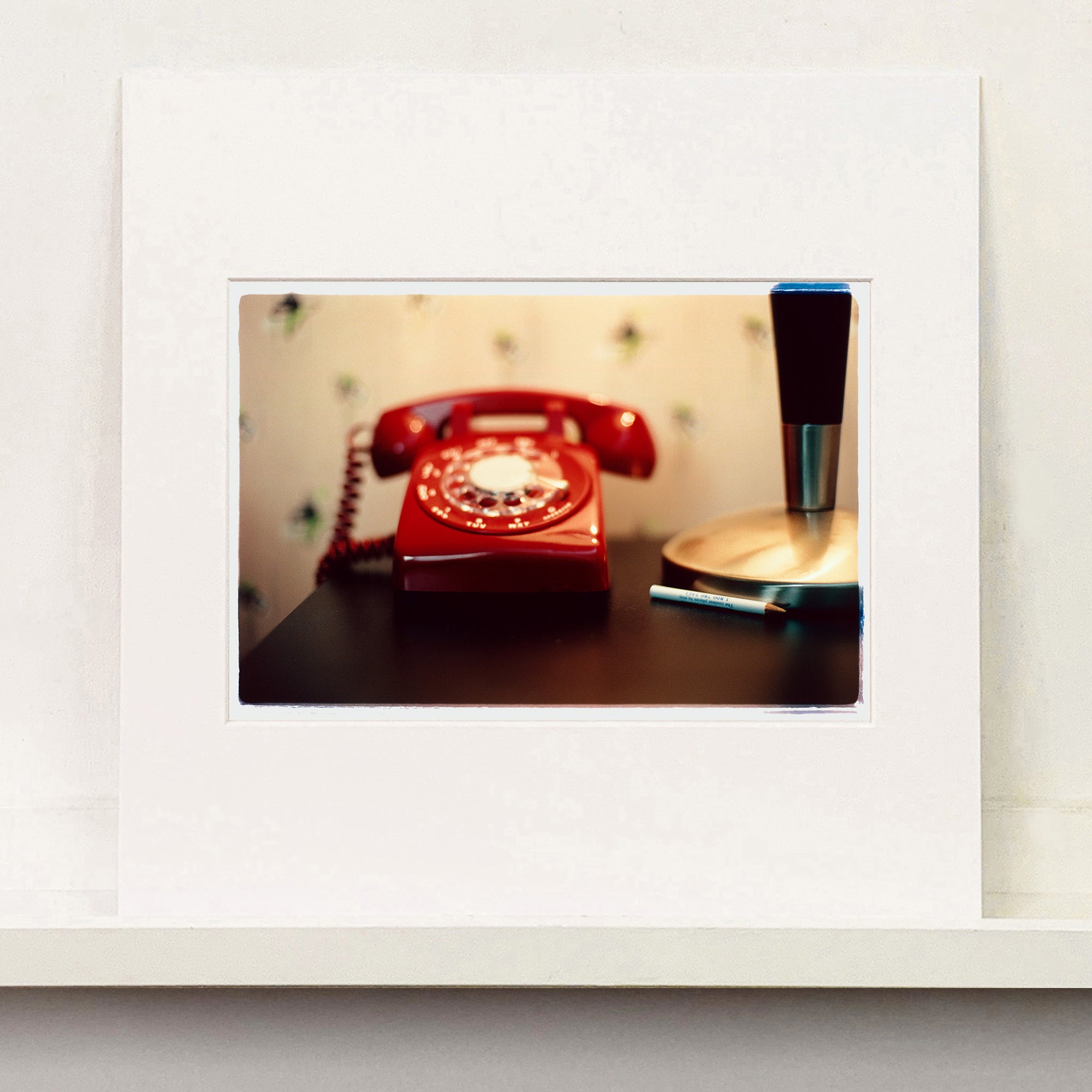 The Coolest Place, Ballantines Movie Colony, Palm Springs, California. Part of Richard Heeps 'Dream in Colour' Series, this cool Palm Springs interiors picture featuring a vintage telephone on a nightstand combines gorgeous colours and dreamy nostalgic mid-century vibes.
