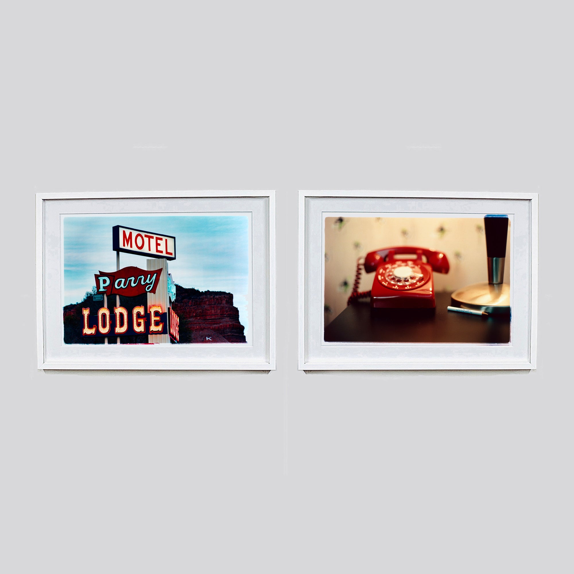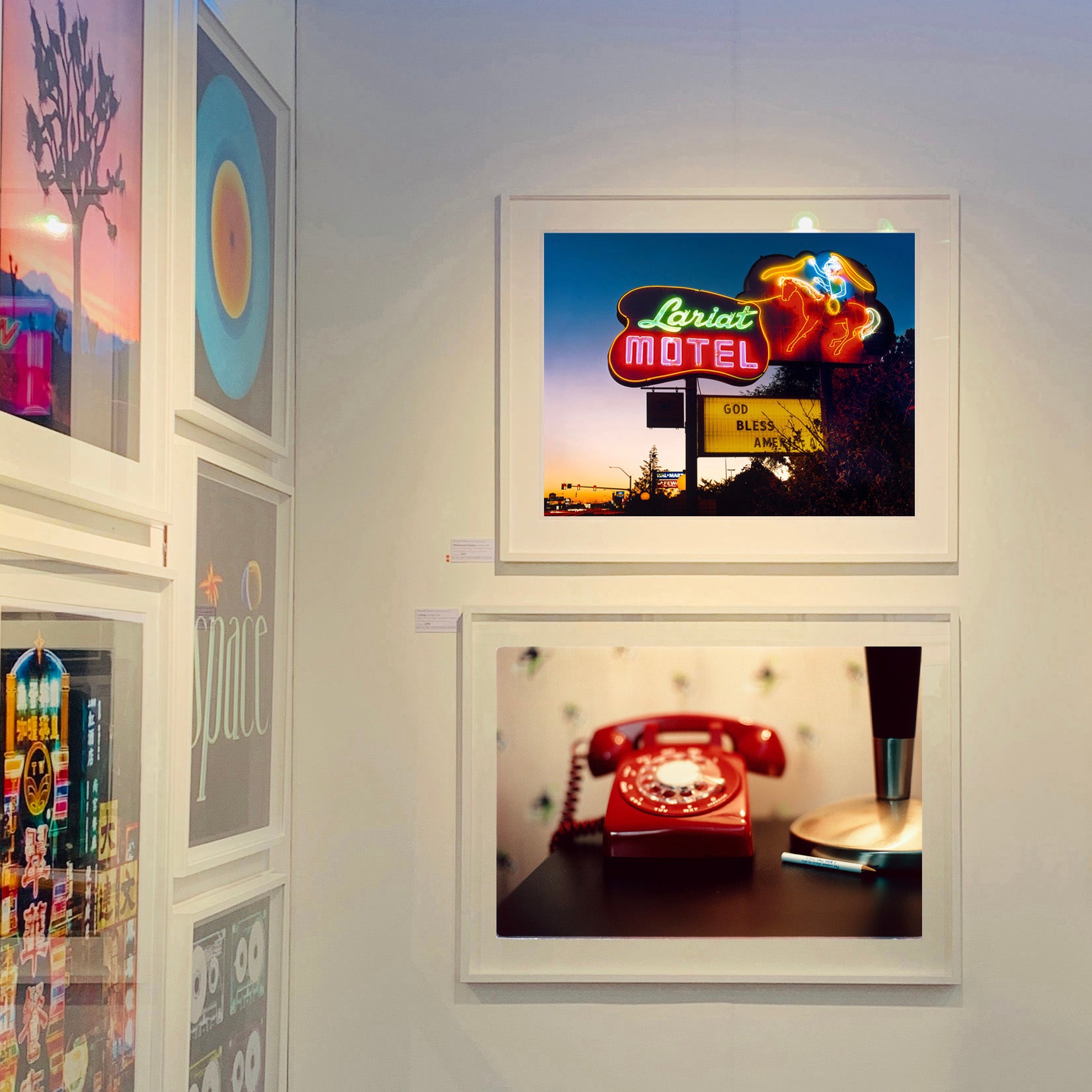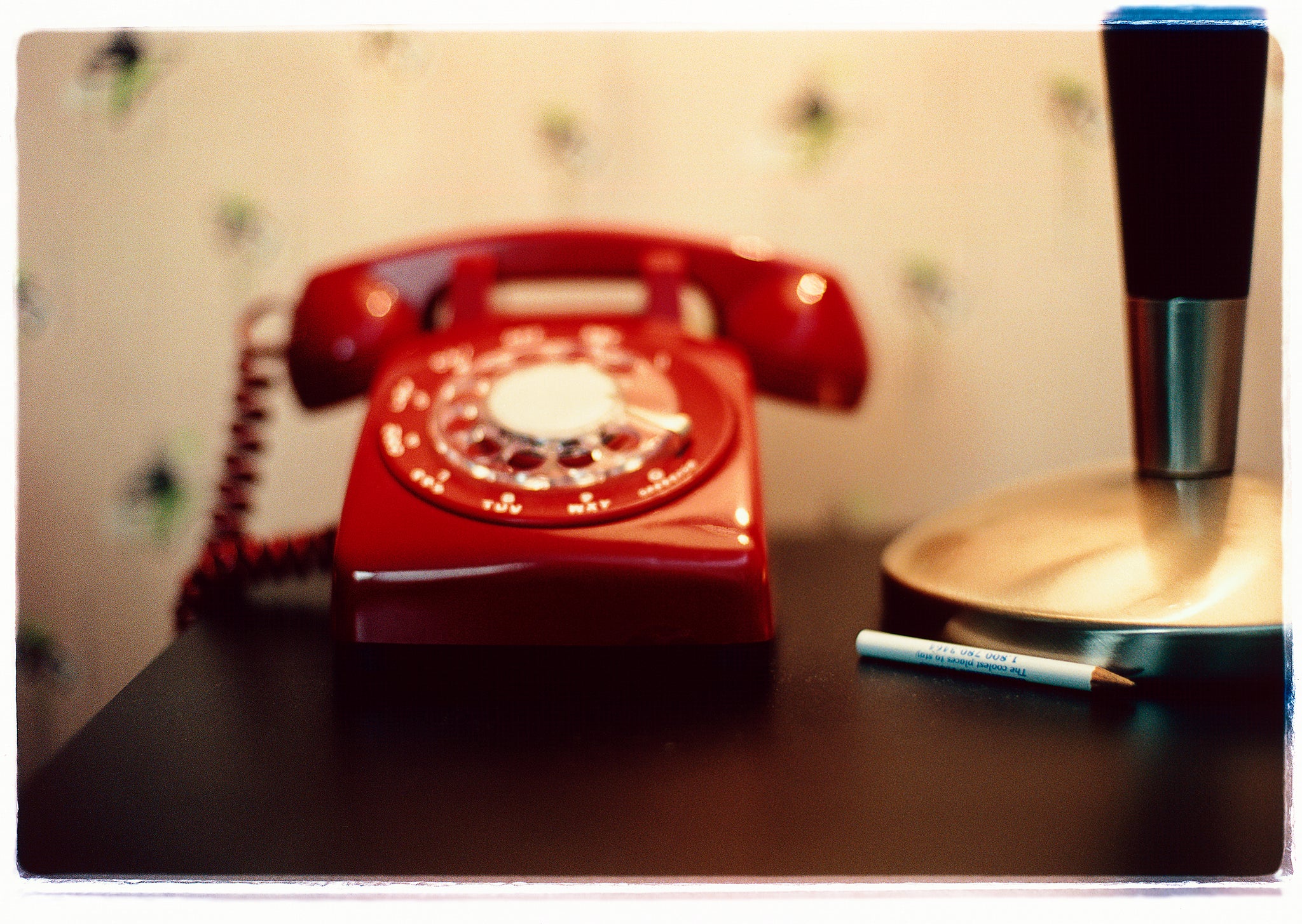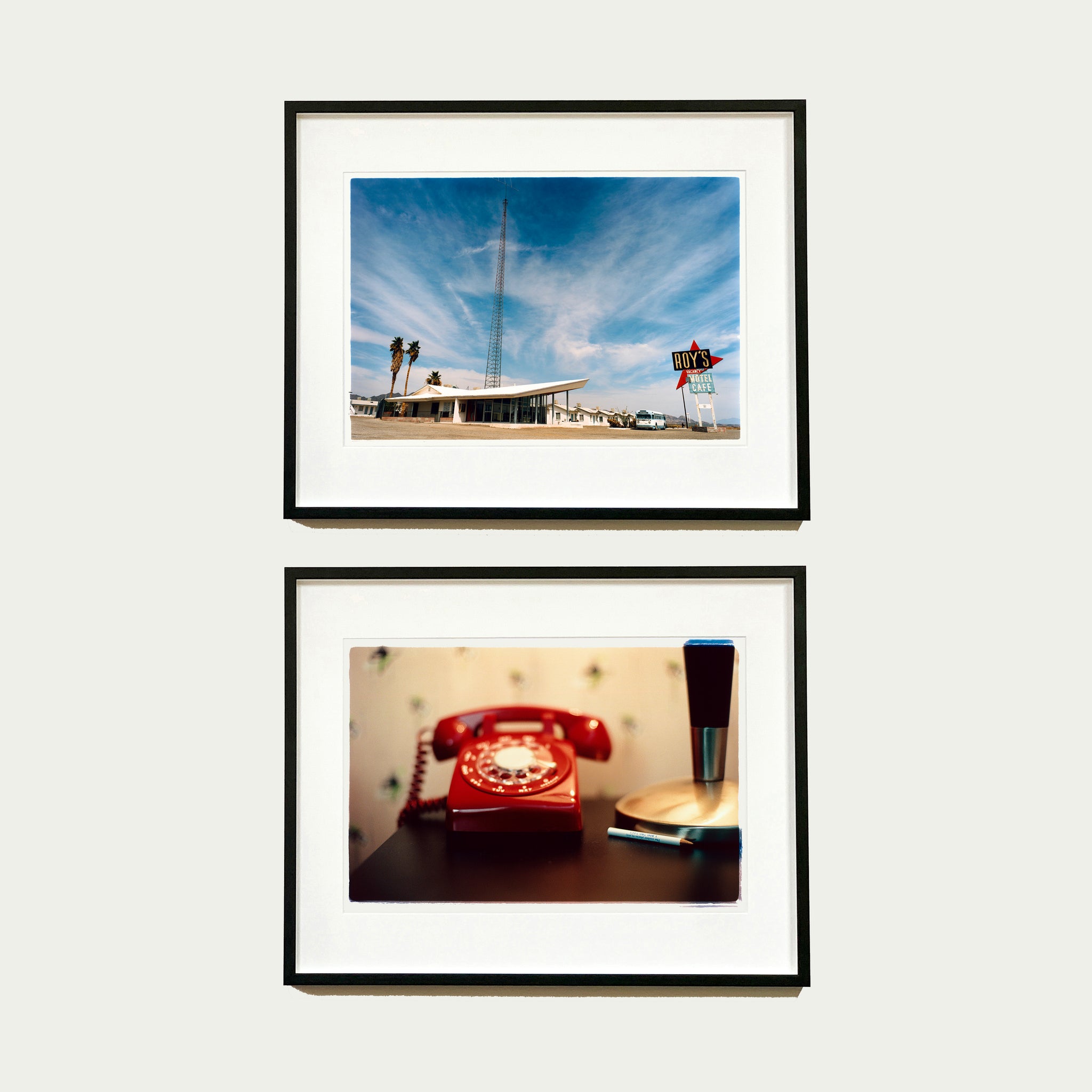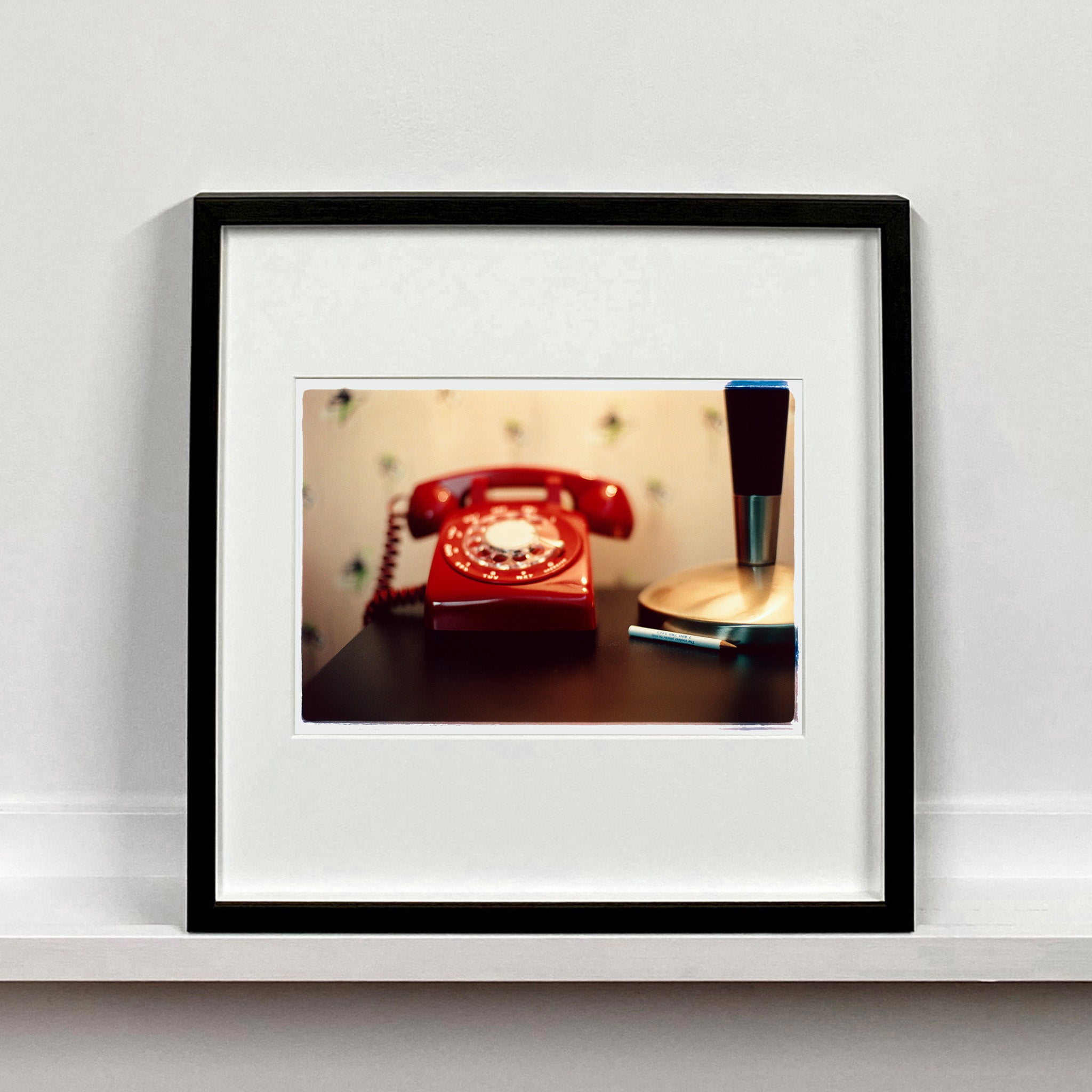 The Coolest Place, Ballantines Movie Colony, Palm Springs, California. Part of Richard Heeps 'Dream in Colour' Series, this cool Palm Springs interiors picture featuring a vintage telephone on a nightstand combines gorgeous colours and dreamy nostalgic mid-century vibes.