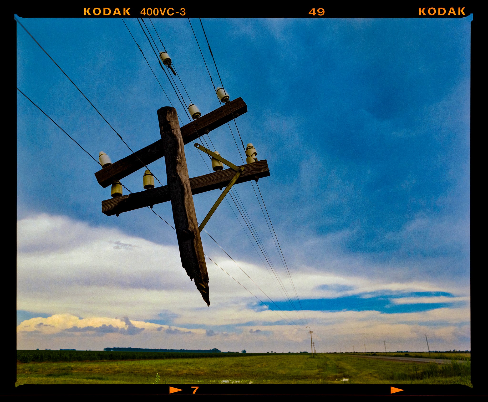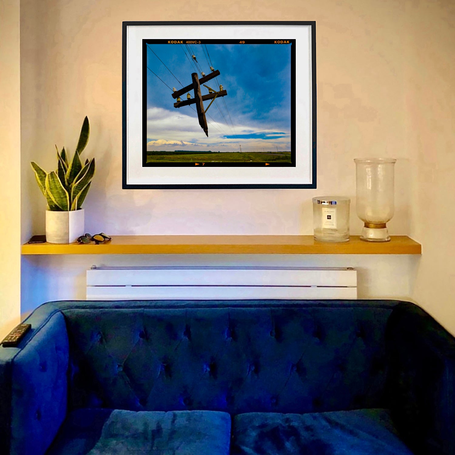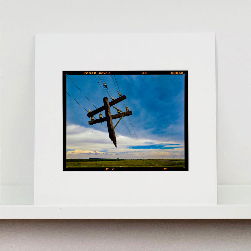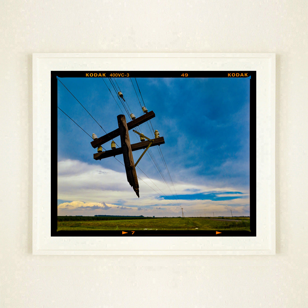 Richard stopped to photograph this Broken Telegraph on the Road to Bothaville as it is reminiscent of The Fenland landscape Richard is so familiar with close to his home, and the American landscape on the many road trips he has been on. The broken telegraph pole, is meaningful as a metaphor of communication and sent against the dramatic sky of an impending storm in the South African landscape, creates a cinematic image.