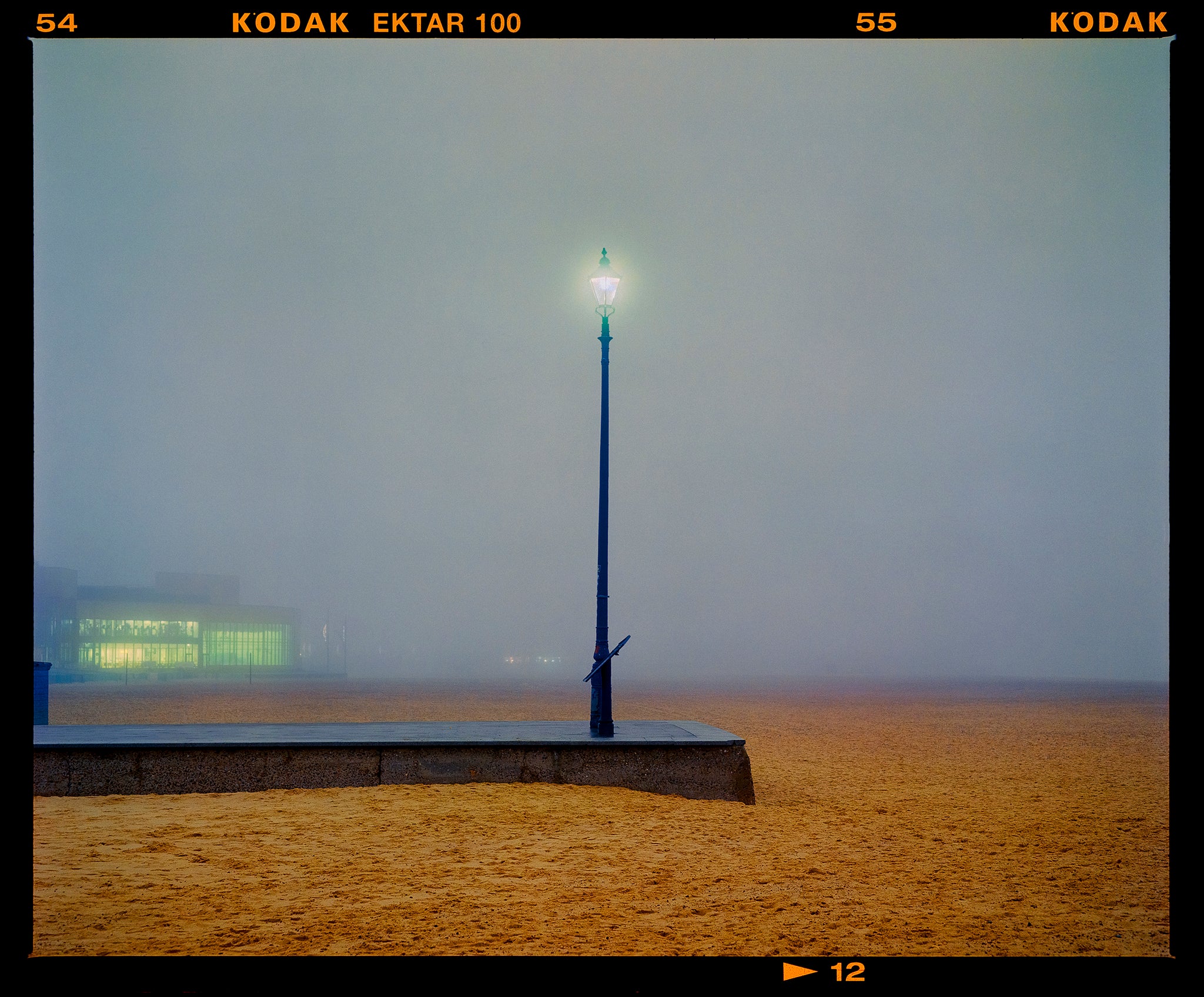 The Jetty, Great Yarmouth, seaside landmark photograph from Richard Heeps' series, On-Sea. This Jetty, a place of rich maritime history and has also drawn notable artists such as Turner and Constable, as an outlook to the seascape. When shooting on the beach at Christmas 2024, the single lamp post was a mesmerising beacon in the misty twilight.