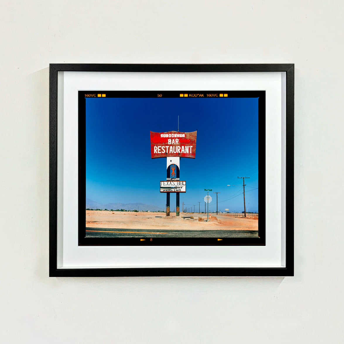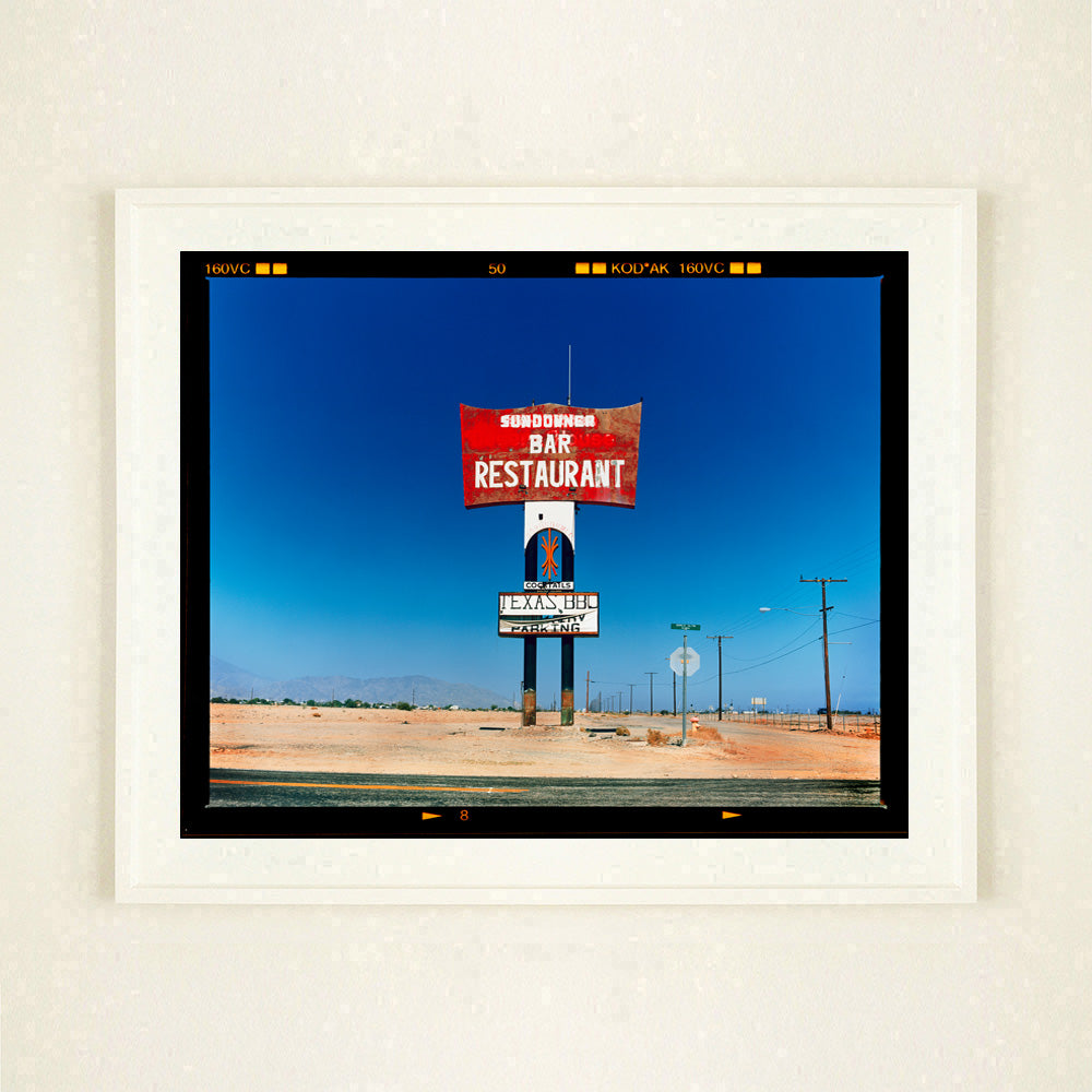 This isolated giant great roadside sign set against a vast blue sky is a remnant of The Sundowner Bar and Restaurant of the Motel which is unfortunately no more. This photograph, part of Richard Heeps Salton Sea Series captures the landscape of the western side of the lake.