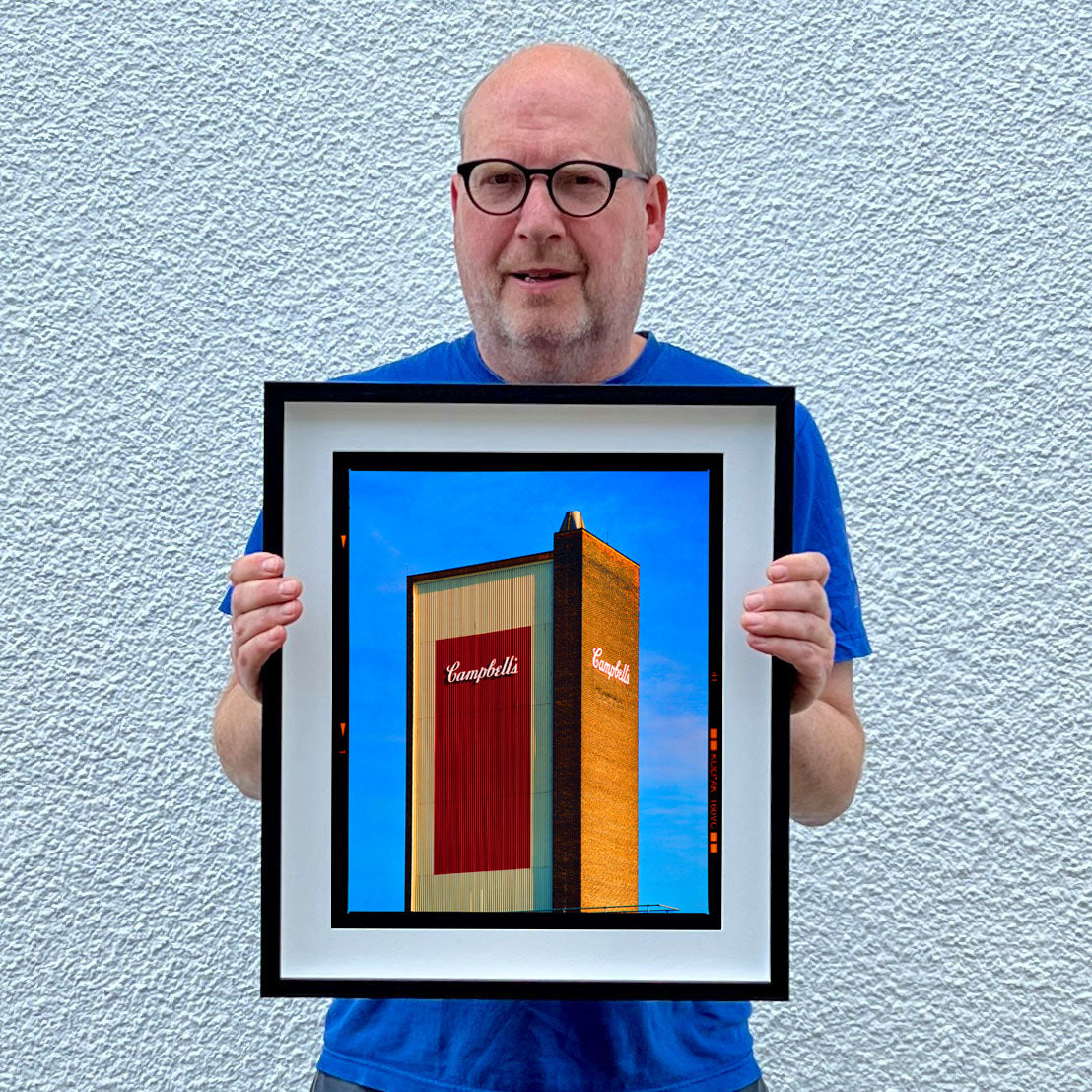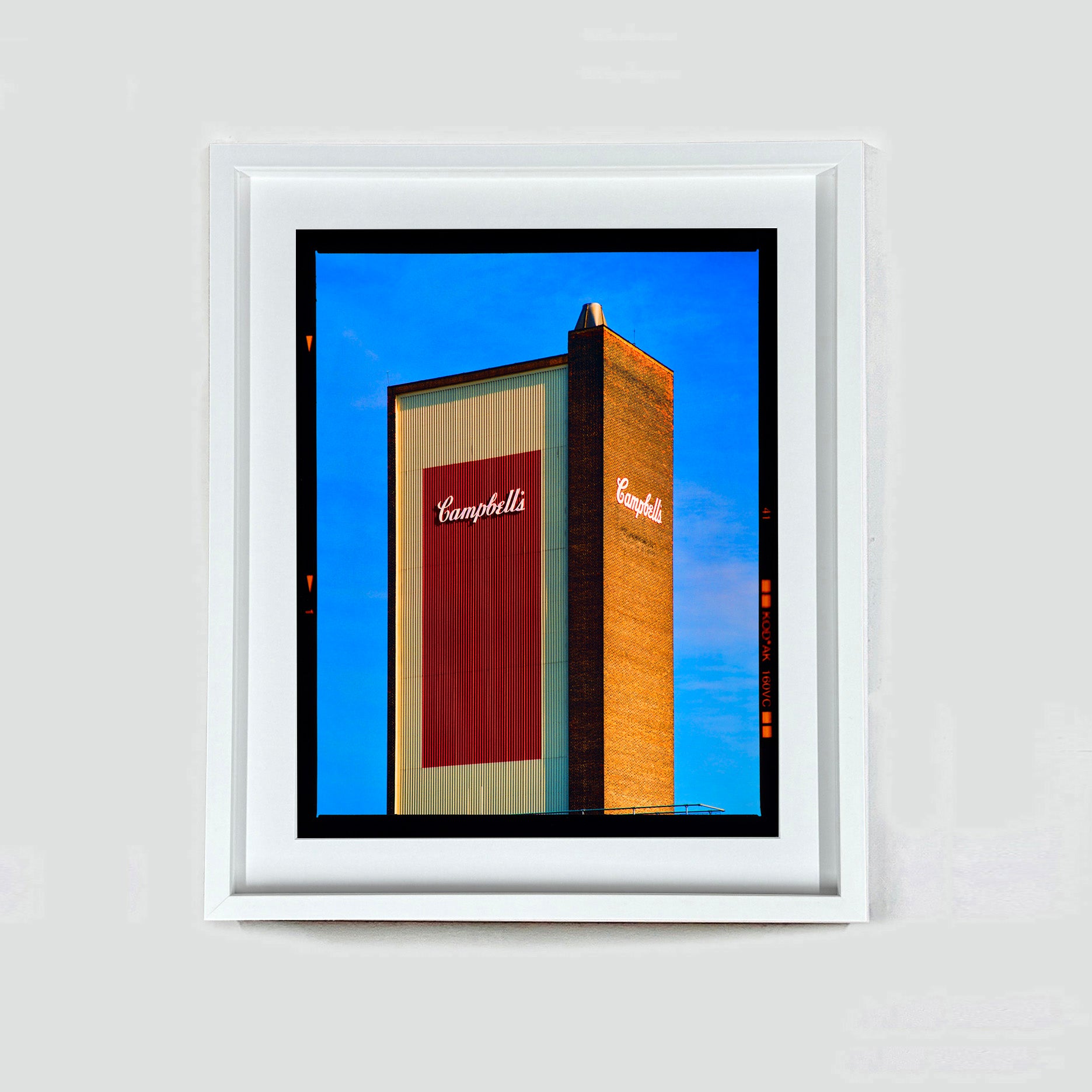 Campbell's Soup, the iconic architecture of the UK factory, photograph by Richard Heeps. Printed full frame presented with the Kodak film border, first executed in Richard's darkroom in January 2023.