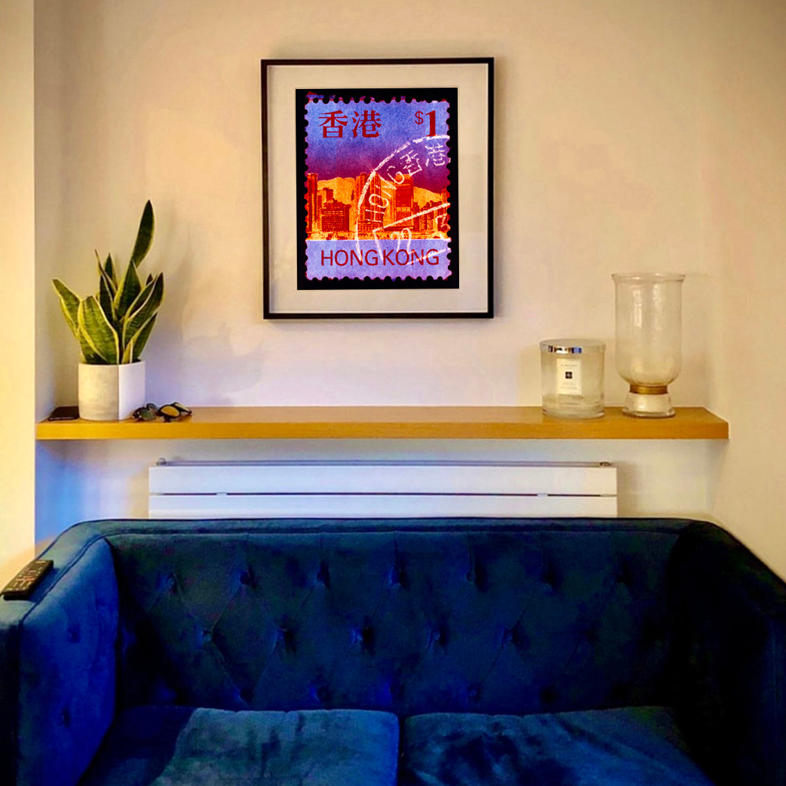 Heidler & Heeps Hong Kong Stamp Collection, HK$1. The fine detailed tapestry of the original small postage stamp has been brought to life, made unique by the franking stamp and Heidler & Heeps specialist darkroom process.