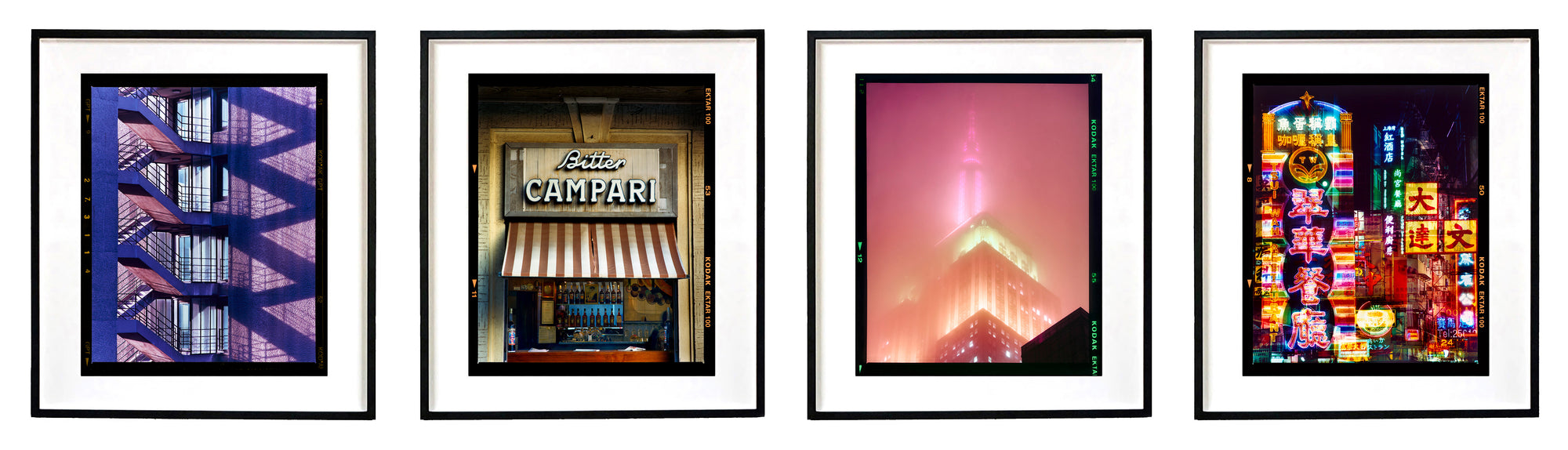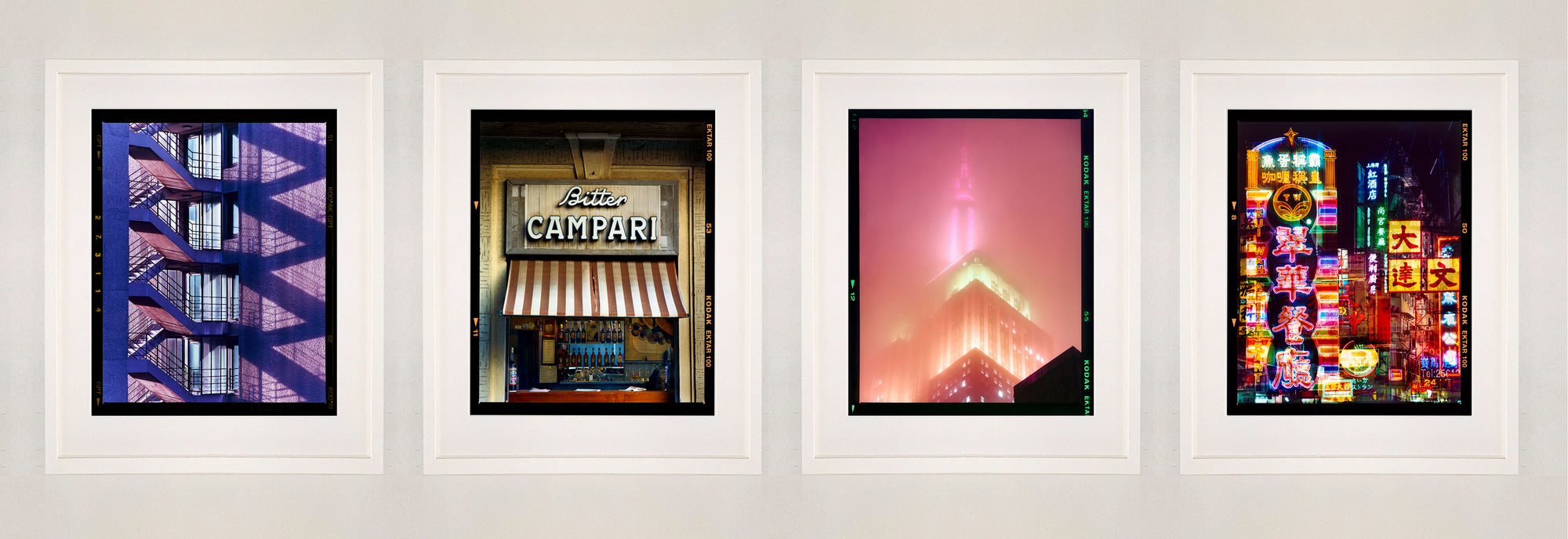 London, Milan, New York, Hong Kong, four iconic cities photographed in Richard Heeps' unique style. A set of four individually framed artworks. They can be hung together in a row vertically, horizontally or spaced out throughout your interior. Featuring